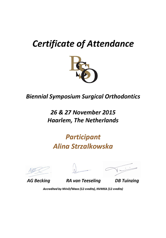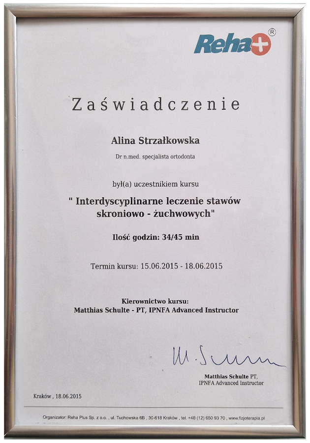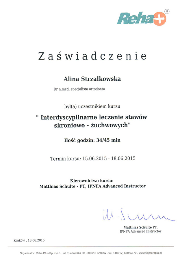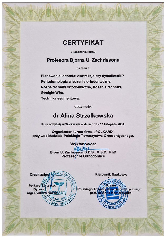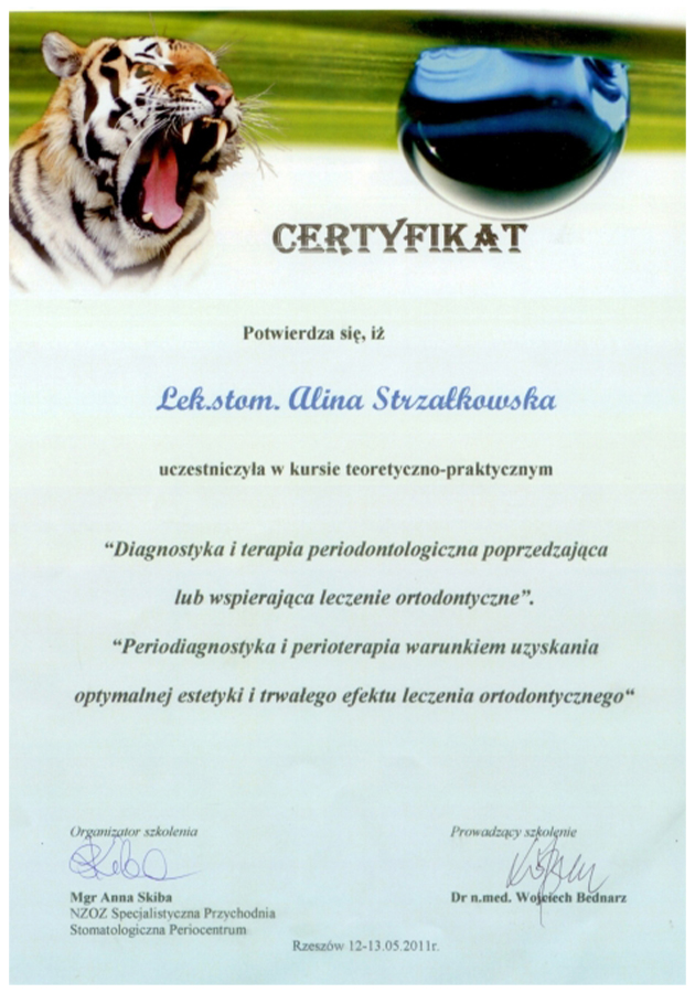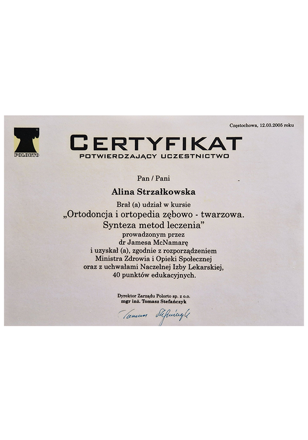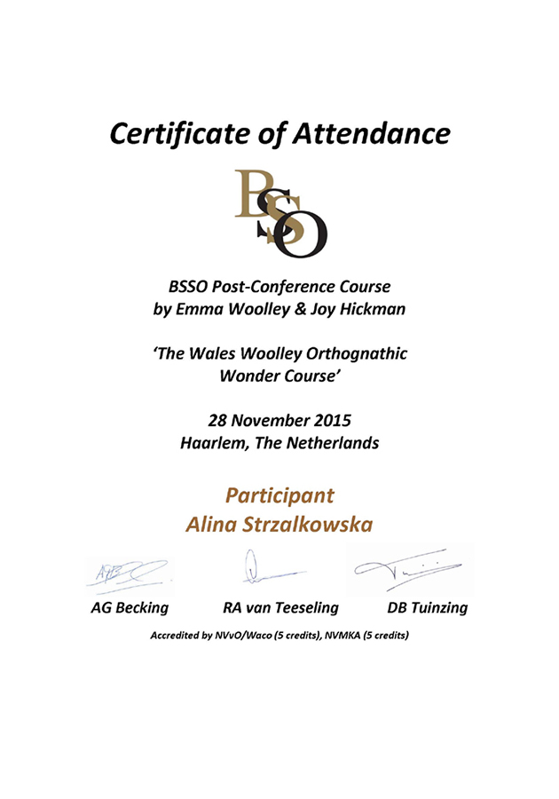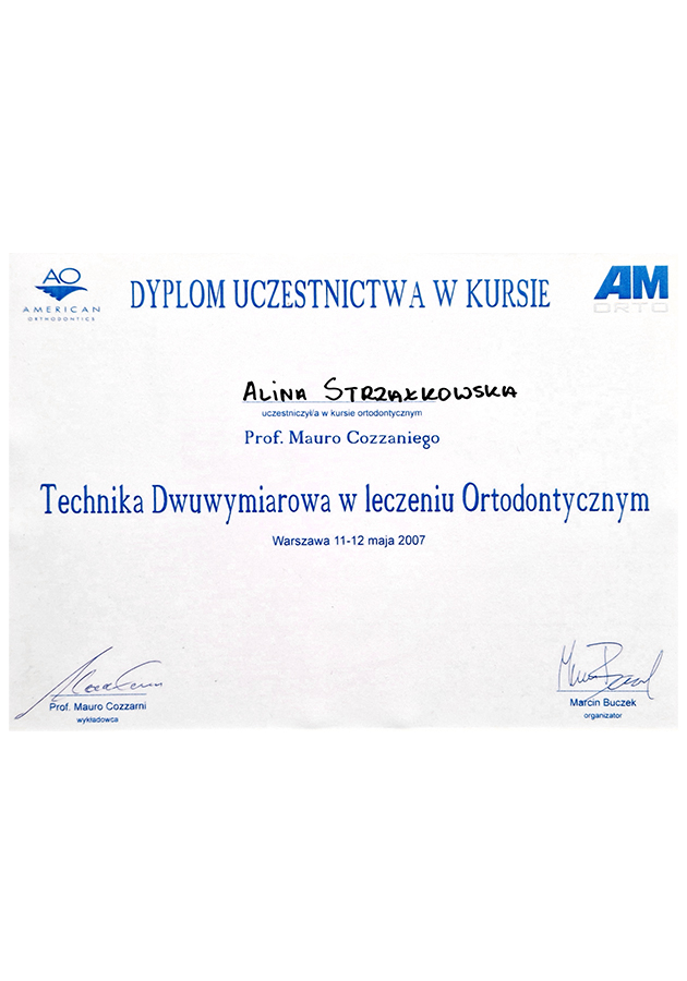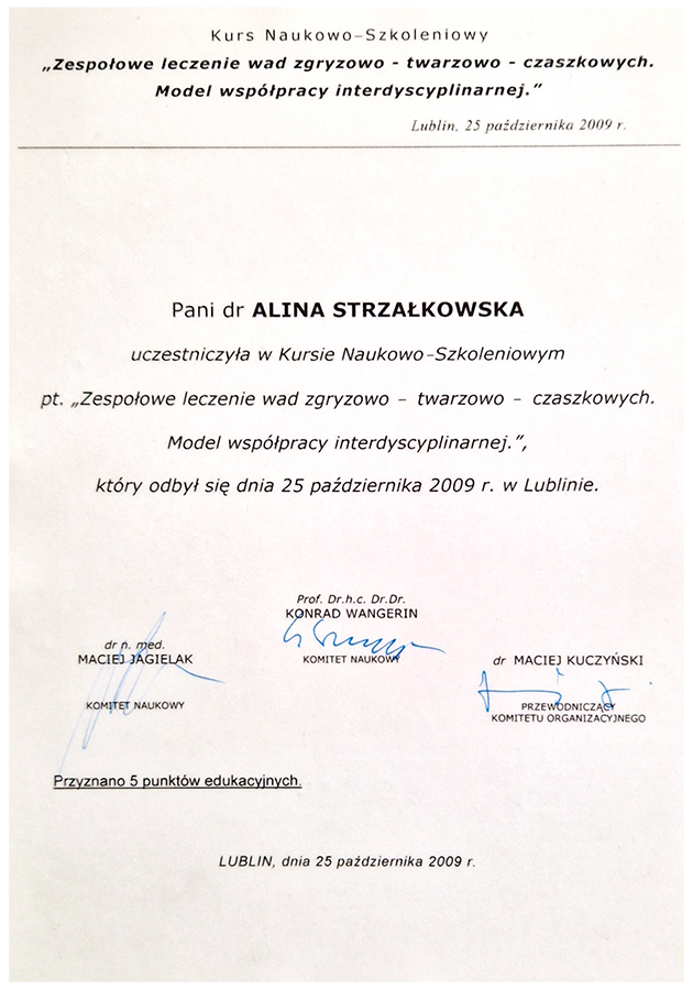 • E. „Wady klasy III – metody leczenia stosowane na różnych etapach rozwoju zębowego i kostnego” – A. Strzałkowska, K. Golusik, T. Matthews-Brzozowska – referat