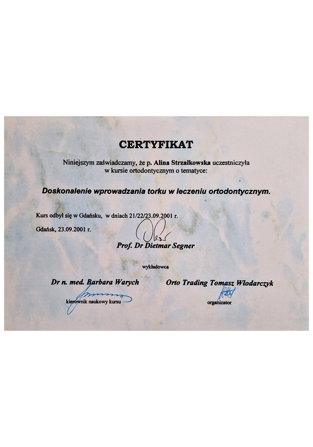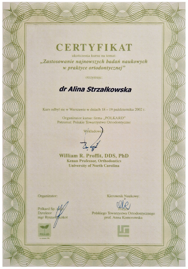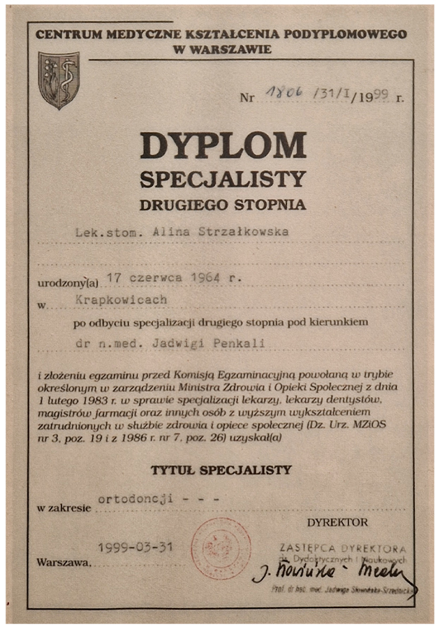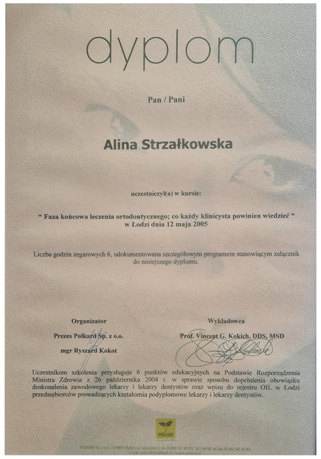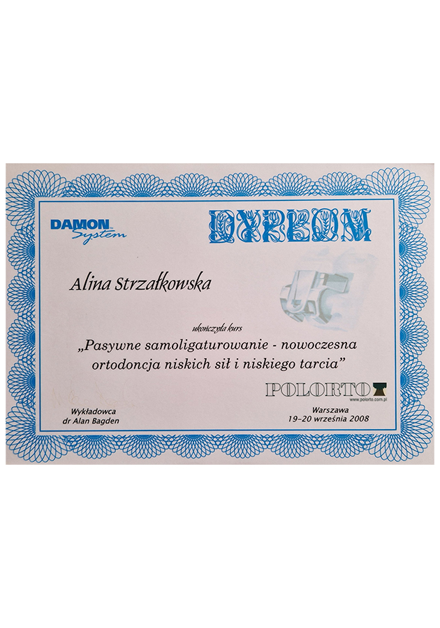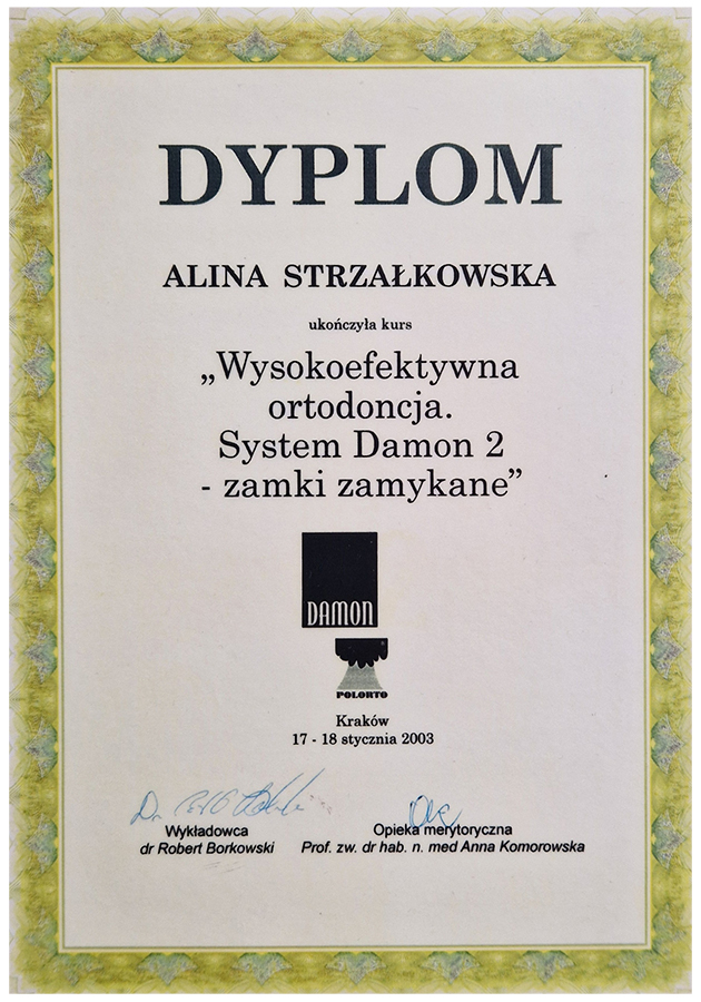 • Moja Praktyka, 2004, Vol. 21, no. 4, s. 32 – „Użycie systemu Damon 2 w leczeniu ortodontycznym pacjenta dorosłego z pooperacyjną dysfunkcją narządu żucia”. A. Strzałkowska, A. Kunc