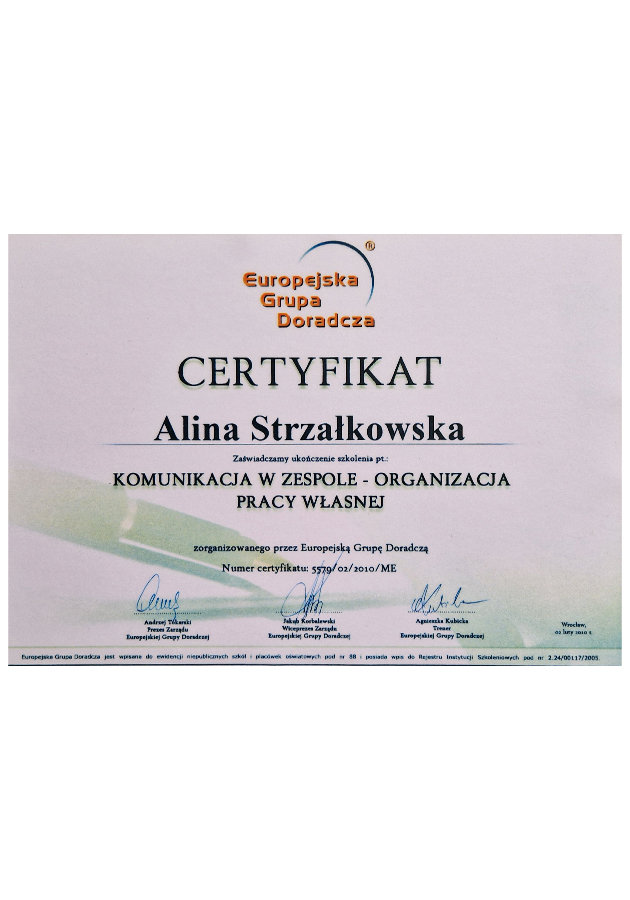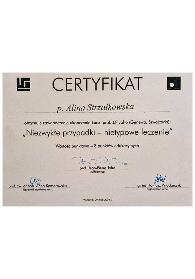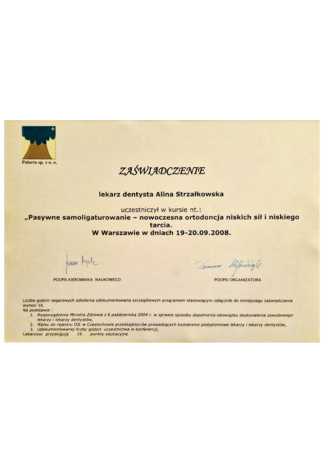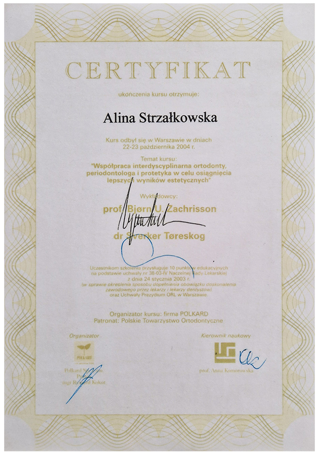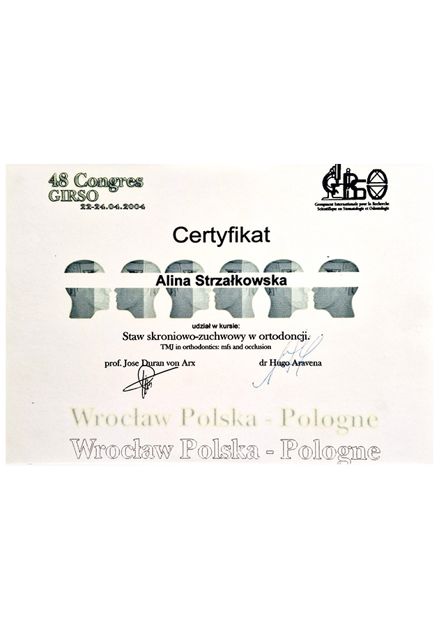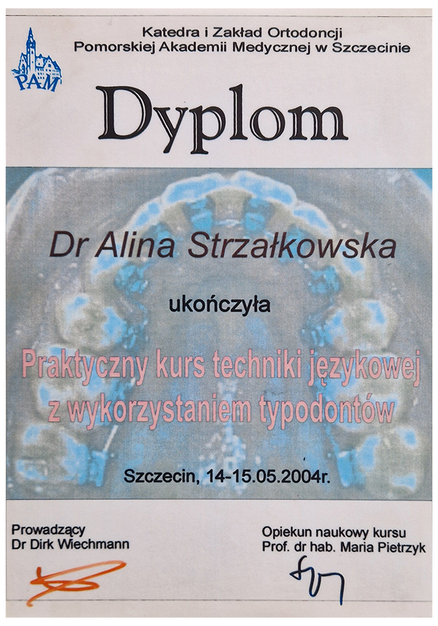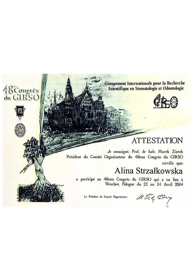 • 23–26.09.2004 – Zjazd Polskiego Towarzystwa Ortodontycznego, Opole – Materiały informacyjne (biuletyn VIII Zjazdu Polskiego Towarzystwa Ortodontycznego w Opolu, s. 15 10.20–10.30 (Wrocław – „Leczenie ortodontyczne pacjenta dorosłego z pooperacyjną dysfunkcją narządu żucia – opis przypadku”. A. Strzałkowska