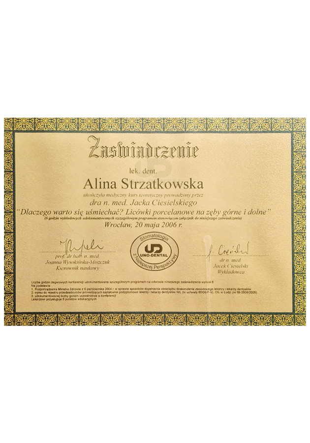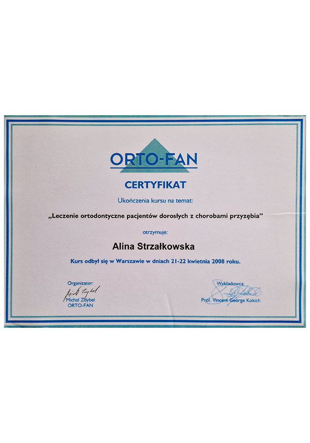 • Moja Praktyka, 2005, Vol. 22, no. 1, s. 8–14 – „Jatrogenne uszkodzenia przyzębia i błony śluzowej w przebiegu leczenia aparatami stałymi”. A. Strzałkowska, A. Kunc