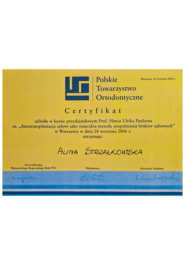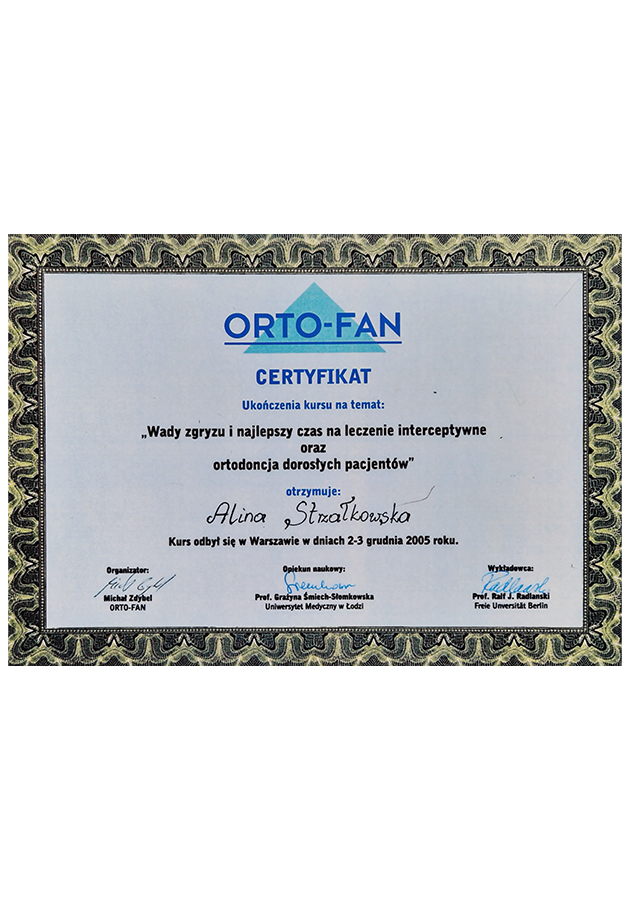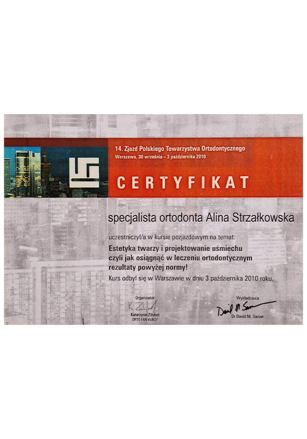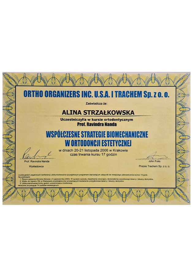 Pracownicy OrthoSmile ciągle poszerzają swoją wiedzę, podnoszą kwalifikacje i poznają najnowsze trendy w leczeniu ortodontycznym, aby zaoferować pacjentom nowoczesne i maksymalnie krótkie leczenie, które przyniesie trwałe efekty estetyczne i zdrowotne. Zachęcamy do zapoznania się z informacjami na temat ich doświadczenia, listą szkoleń, w których brali udział oraz z posiadanymi dyplomami i certyfikatami.