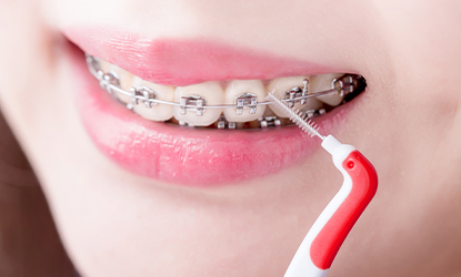 Szczotkowanie powinno trwać co najmniej 3 minuty, z uwzględnieniem wszystkich miejsc, w tym trudno dostępnych przestrzeni, zamków aparatu i miejsc wokół plomb. Szczoteczkę trzymaj pod kątem 90° względem dziąseł, wykonując krótkie, okrężne ruchy. Oczyszczaj również wewnętrzne powierzchnie zębów, używając wąskiej szczoteczki jednopęczkowej do precyzyjnego czyszczenia trudno dostępnych miejsc.